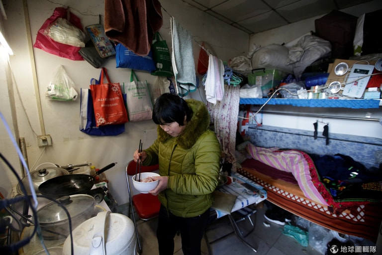 在北京市通州區,來自河南省的移工陶蘭英(Tao Lanying)正在替老公、女兒張羅晚餐,他們一家住在以移工為主的低廉公寓內。