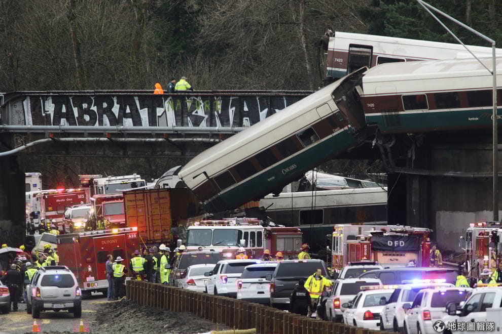 18號早上通勤尖峰時刻,美國鐵路「喀斯喀特山脈號」(Amtrak Cascades)501次列車發生出軌意外,導致至少 3人死亡,超過百人受傷,而在地面上至少有 5輛汽車遭到從天而降的列車攻擊。