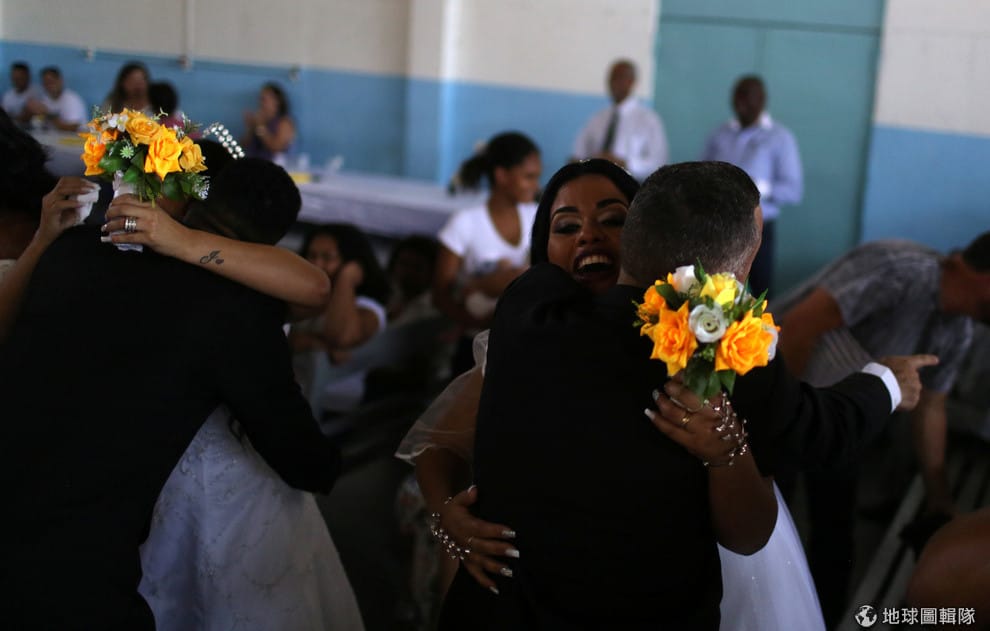 在里約熱內盧最大的男子監獄內,一場由「團結之心」(Coracao Solidario)組織策畫的監獄集團婚禮溫馨開場,受刑人開心地擁抱他們的新娘。