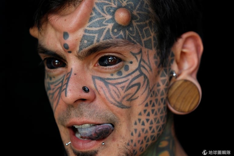 哥倫比亞城市麥德林(Medellin)在今年 7月中舉辦紋身展,在這裡可以看到刺青迷在自己身體刺上各種超乎想像的花紋,畫面中的哥倫比亞男子狄亞茲(Carlos Dehaquiz)連自己的眼睛、舌頭都不放過刺青的機會。