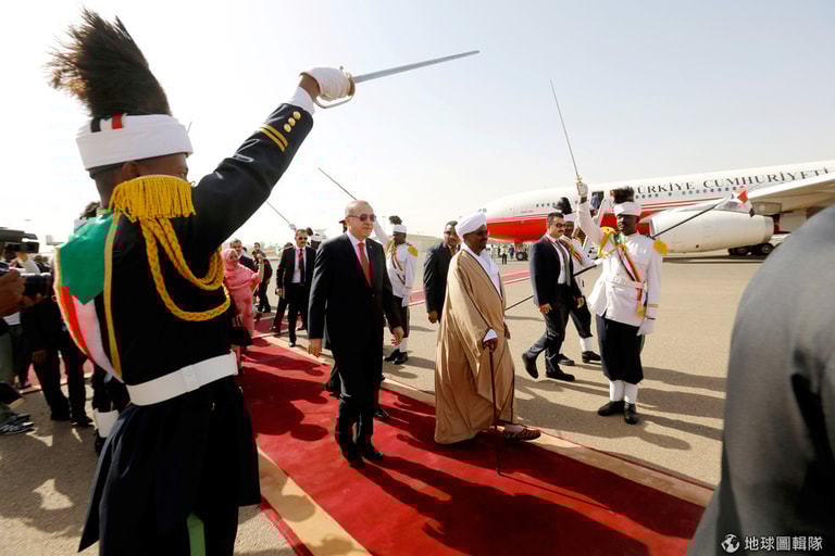 24號這天,土耳其總統埃爾多安(Recep Tayyip Erdogan,左)抵達蘇丹,受到蘇丹總統巴席爾(Omer Al Bashir,右)的歡迎,兩國也就彼此在經貿和軍事的合作成立「戰略合作委員會」。拜訪完蘇丹後,埃爾多安將接著拜訪突尼西亞以及查德。