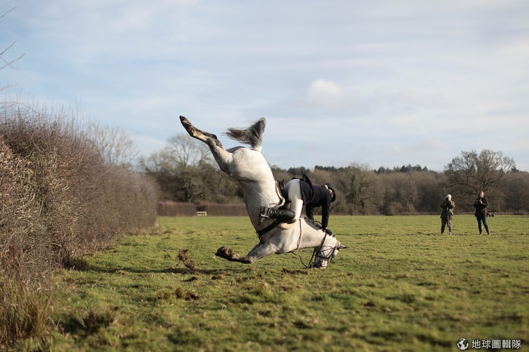 在一年一度的節禮日(Boxing Day)獵狐活動上,一名騎師策馬跨欄時不慎跌倒。