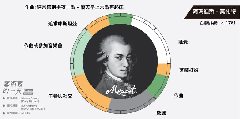 35歲便英年早逝的莫札特,除了作曲以外還相當注重社交生活,睡眠時間有點短呢!