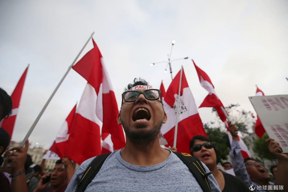 在首都利馬街頭,大批民眾高舉國旗上街抗議,反對現任總統庫辛斯基(Pedro Pablo Kuczynski)特赦前總統藤森謙也(Alberto Fujimori)的決定。