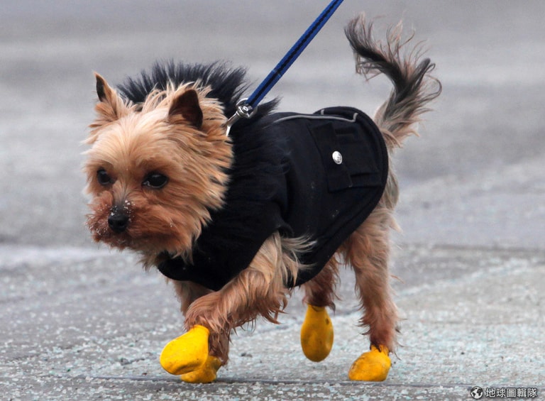 加拿大一穿雨靴的小狗