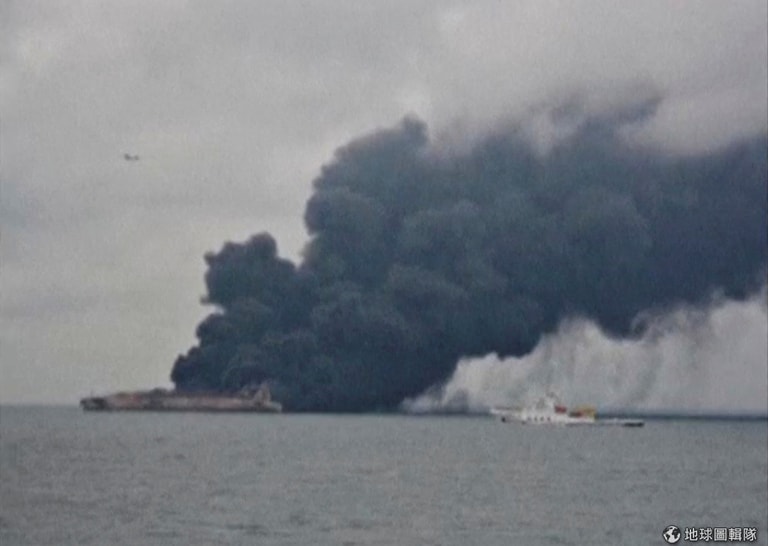 本月 6號,一艘從伊朗的哈爾克島(Kharg)前往南韓大山港(Daesan)的油輪「SANCHI」,在距離上海 296公里的地方發生撞船事件。