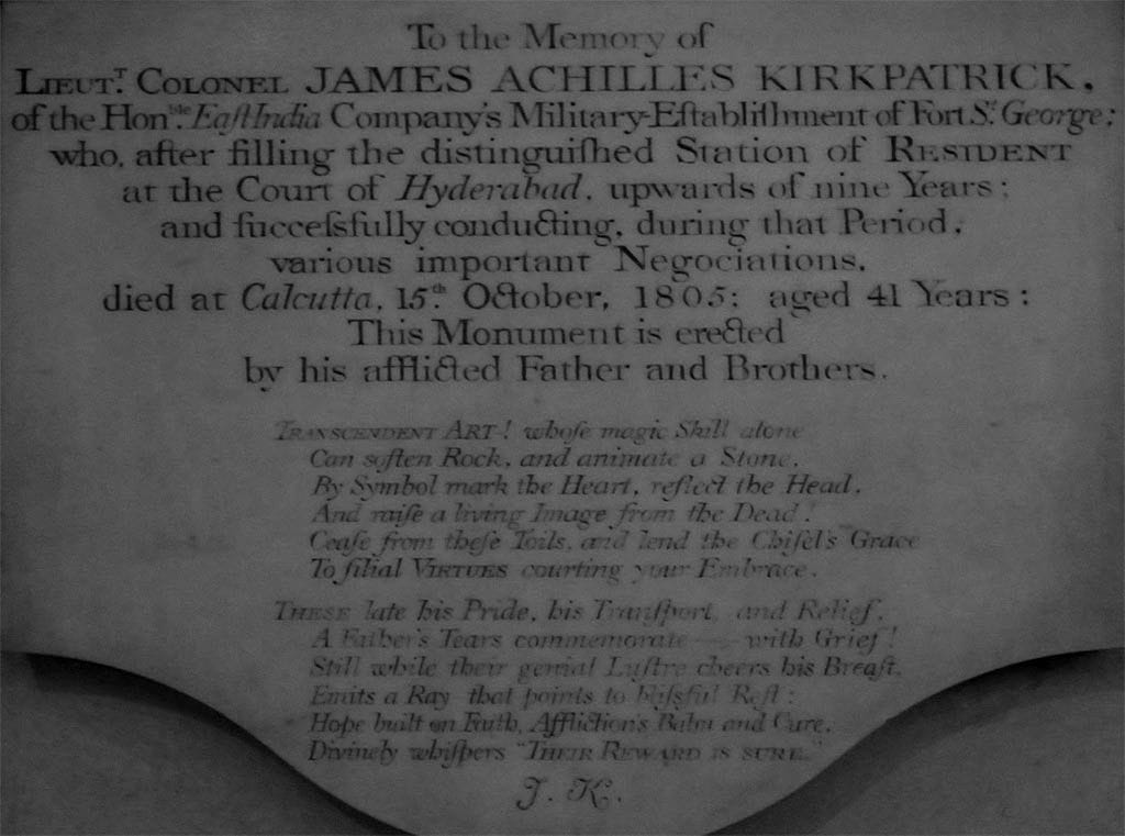 然而對帝國主義的大英帝國來講,「混血王子的背叛」可不是那麼容易可以妥協接受的!這篇文章就以白蒙兀兒人中最具代表性的詹姆斯·阿基里斯·派翠克(James Achilles Kirkpatrick,1764-1805)上校與海德拉巴穆斯林貴族之女凱爾尼薩(Khair-un-Nissa)的愛情故事作為主軸,讓我們一起來認識這個印度歷史上特殊卻又少有討論的族群——白蒙兀兒人。
