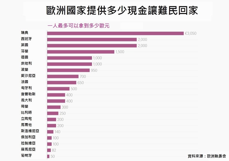 無論如何,不少人質疑歐洲各國支付安家費給難民,讓他們自願離境到底對不對。