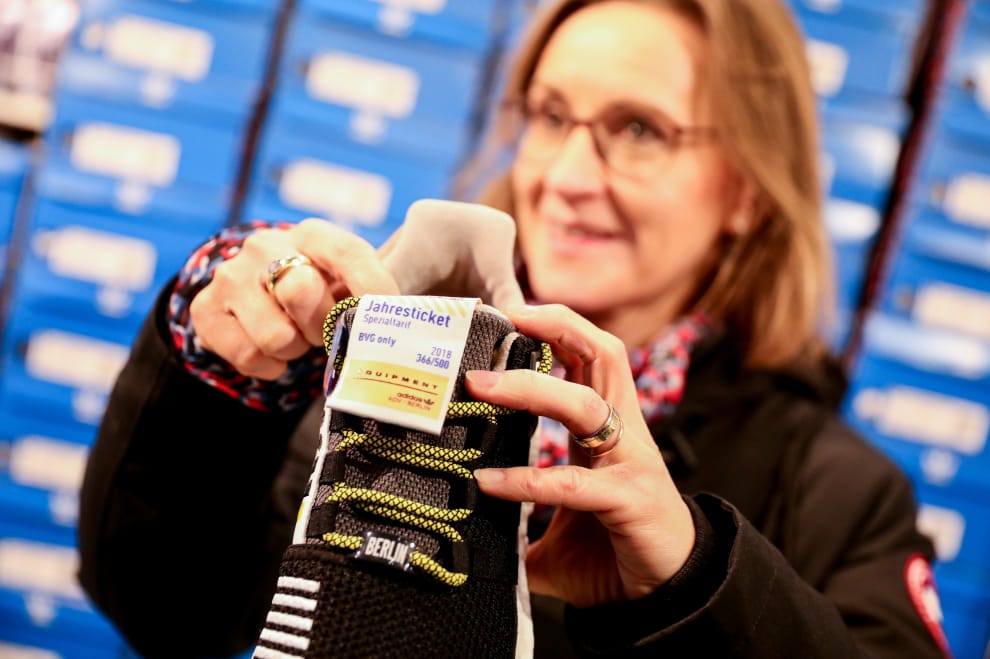 16號這天,上百名民眾不畏室外零下的低溫,在德國柏林的球鞋店外大排長龍,他們的目的只有一個──買到愛迪達(Adidas)和德國柏林公共運輸公司(BVG)聯名推出的 500雙限量球鞋,只要穿上這雙鞋,一年內搭BVG在柏林A區和B區營運的公車、電車和地鐵都不用錢,因為愛迪達已經把BVG年票縫在球鞋的鞋舌上了。