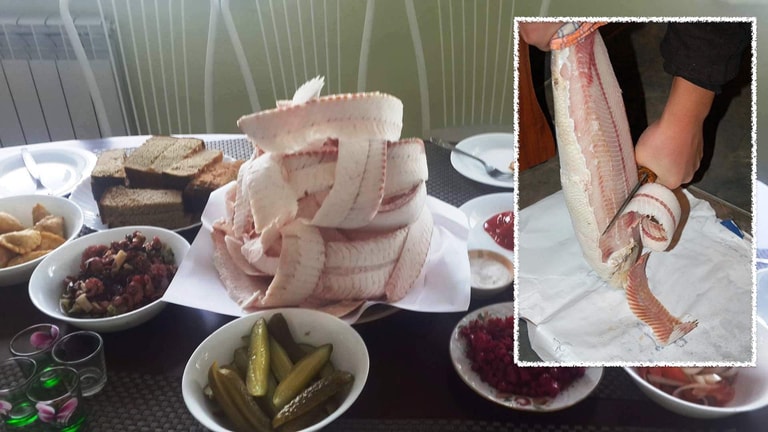 考量到極度嚴寒的氣候完全沒辦法栽種作物,當地人的主食充滿了各式各樣的肉品,養奶牛或馴鹿、冰釣、打獵是他們主要的生活方式。有時他們也會直接吃生肉或冷凍肉,當地就有一道被稱為「Stroganina」(英譯,shaving,即刨花)的料理,即把冷凍魚、馴鹿肉、馬肝臟直接削片來吃。