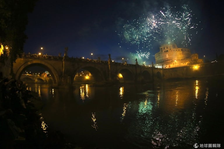 民眾聚集到台伯河(Tiber)等著欣賞晚上的煙火。