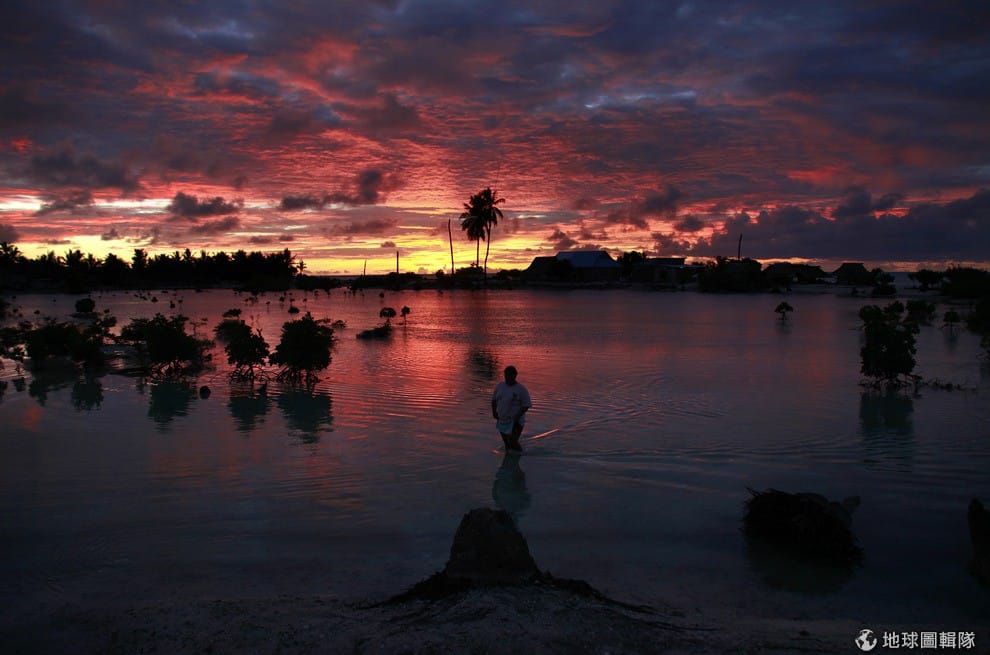 地勢低窪的吉里巴斯(Kiribati)位在中南太平洋附近,其中,吉里巴斯近期因為海平面上升、土地面積無法負荷居民數量進入緊迫狀態而引起國際關注,《路透社》攝影師葛雷(David Gray)就特地前往當地,用他的鏡頭記錄下這片被宣告將在60年間消失的島國身影。
