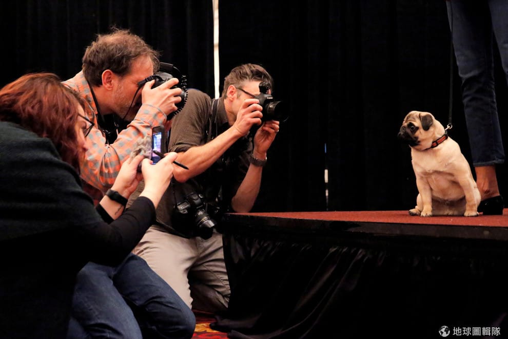 在 142屆西敏寺犬展(Westminster Kennel Club Dog Show)上,擺好姿勢的哈巴狗被一群攝影師包圍住,大家都搶著要捕捉下最好看的畫面。