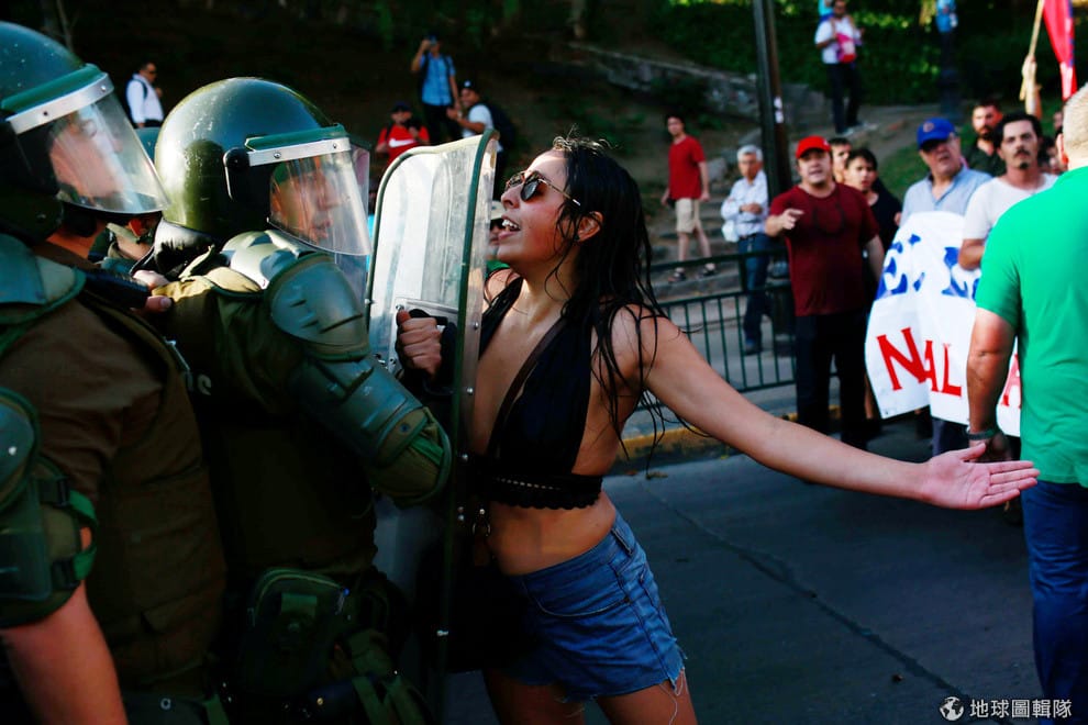 人們走在智利首都聖地亞哥(Santiago)的街頭上抗議,不滿政府打算把鋰礦藏國有化的決定。