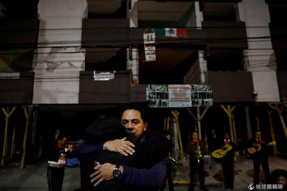 地震受災戶紛紛擁抱彼此,他們的公寓Pacifico 455因為 2017年9月的地震被震毀,他們在本月 30號為此舉辦了一場告別典禮。
