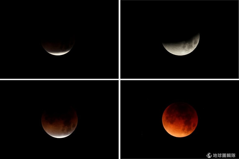 最後,這顆超級藍月又經過了地球的陰影,造成月全食現象,當月全食的時候,月亮會呈現一片紅的模樣(一般稱「紅月」、「血月」)。所以「超級藍紅月亮」就誕生啦!