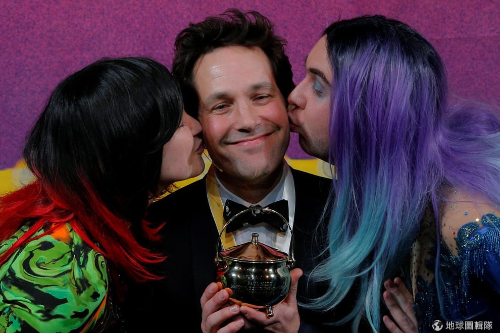美國男星保羅路德(Paul Rudd)接受了兩名變裝皇后的獻吻。他被美國哈佛大學的「快速布丁劇團」(Hasty Pudding Theatricals)獲選為年度風雲男性獎。