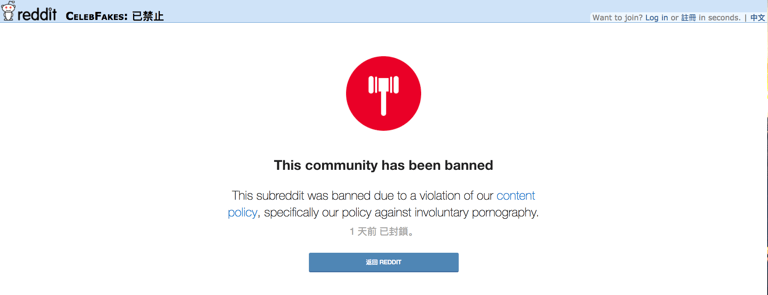 本周三(7),在reddit發布公告後,有 9萬1,000個人追蹤的「Deepfake」版隨即被關閉,此外,另一個已經開版 7年、專門製作分享名人假照片的「Celebfakes」版也遭關閉,不過沒有涉及「假A片」問題的deepfake影片並不會被禁止。