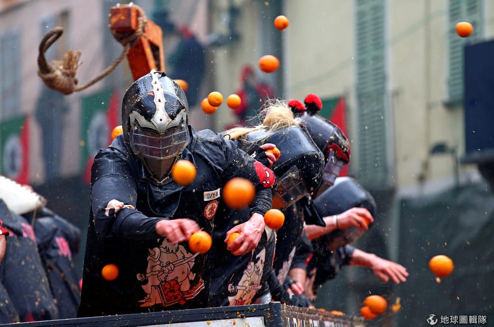義大利北部城鎮伊夫雷亞(Ivrea)迎接了一年一度的柳丁大戰(Battle of the oranges),參加者拿著柳丁往別人身上用力砸下去,彼此誰也不讓誰。