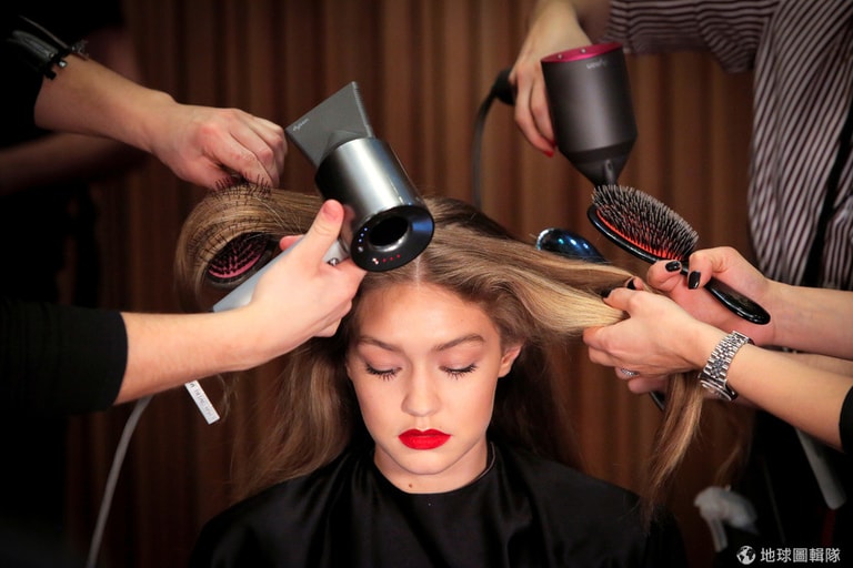 在紐約時裝周上,人們正忙著替準備上台的模特兒吉吉哈蒂德(Gigi Hadid)打理好髮妝。