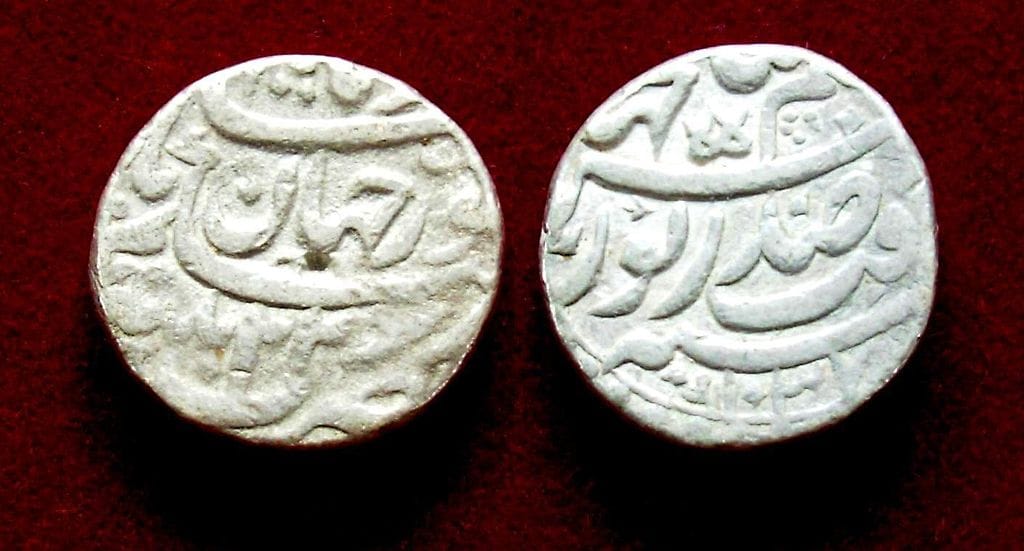 賈汗季王發行的銀色硬幣,刻有 Nur Jahan 的字樣。圖片來源:Wikimedia Commons