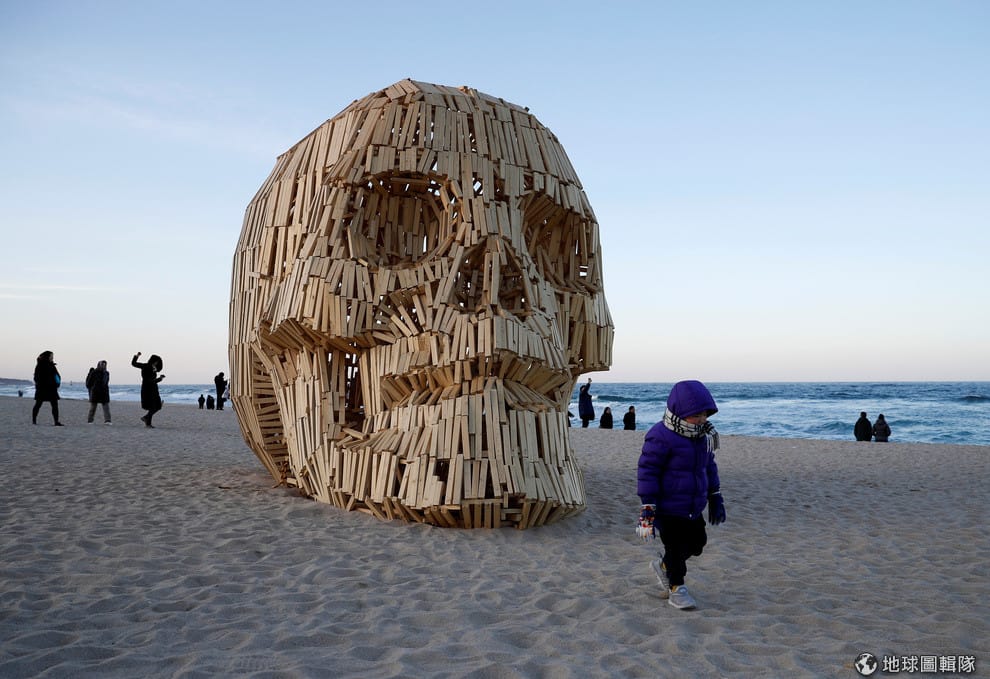 在 2018平昌冬奧期間,一名藝術家在鏡浦海邊設置了一顆大大的木製骷髏頭,準備將它一把點燃化為熊熊火焰照亮夜空。