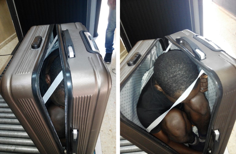 2015年5月7日,海關在西班牙飛地休達(Ceuta)發現有一名 19歲的摩洛哥女生拖著一個超重的行李,這件行李經過X光機掃描之後,安檢人員發現行李箱裡疑似藏著一個人。