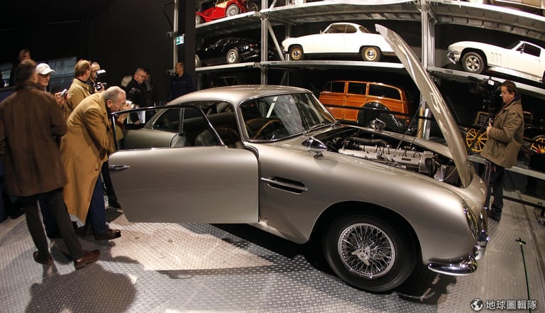 照片中的007粉絲正興奮地圍著Aston Martin DB5打轉,這輛車自從在1964年的007系列電影金手指(Goldfinger)與1965年霹靂彈(Thunderball)中登場後,成了許多人心目中夢幻車種。許多影迷都夢想能擁有一台DB5,如此彷彿就能變得跟詹姆士龐德一樣俐落地在驚險場面中來去自如。這輛夢幻間諜車,現在就停在瑞士琉森(Luzern)的交通博物館中。