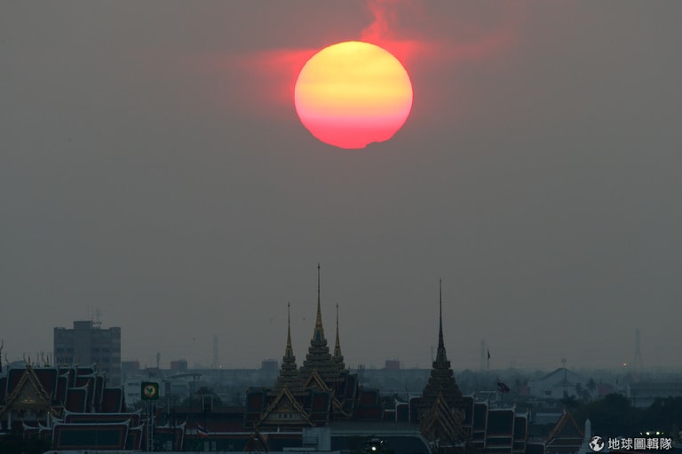 太陽緩緩地在曼谷大皇宮上方下沉,構成了一幅絕美的景致。
