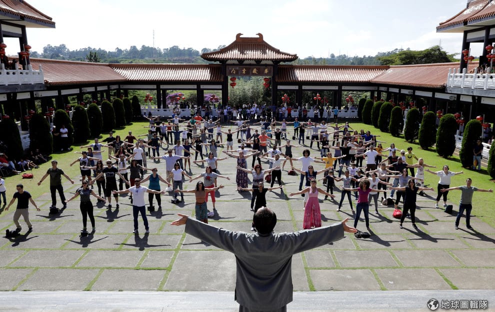 在巴西東南部科蒂亞市(Cotia)的如來寺,人們為了慶祝農曆新年的到來一起練太極。