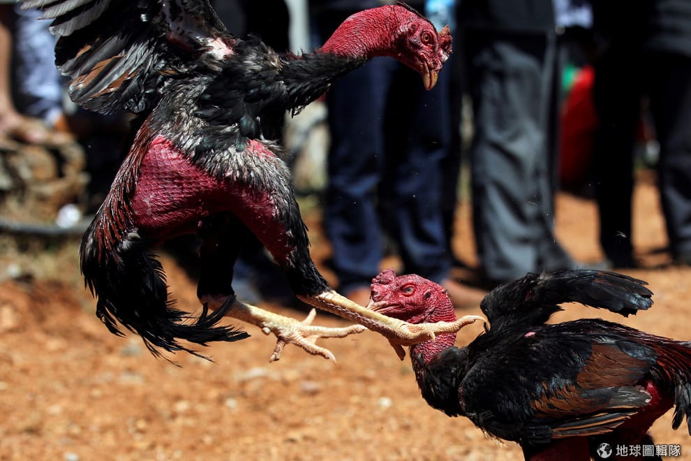 在雲南省,春節過後緊接著的便是鬥雞大賽,只見兩隻鬥雞彼此鬥得難分難解,一旁充滿了吆喝加油的民眾。