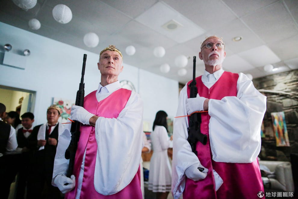 在賓州的統一教教堂內,上百對夫婦手上拿著AR-15步槍,參加統一教幫他們舉辦的婚姻祝願典禮。對信徒來說,他們手上的步槍如同「上帝的聖杖」,可以拯救近日佛羅里達州高校槍擊案受害者的性命。