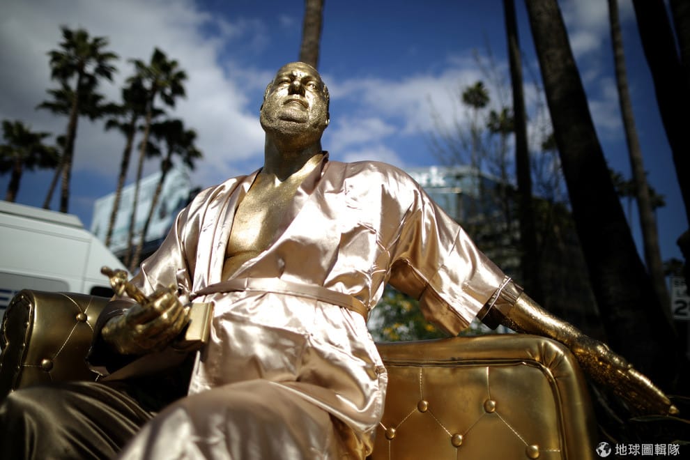 在洛杉磯好萊塢大道上的杜比劇院(Dolby Theatre),藝術家耶素斯(Plastic Jesus)打造了一尊好萊塢大製片韋恩斯坦(Harvey Weinstein)穿著浴袍的金雕像,藉此諷刺他到處利用權勢性騷擾演員和工作人員。