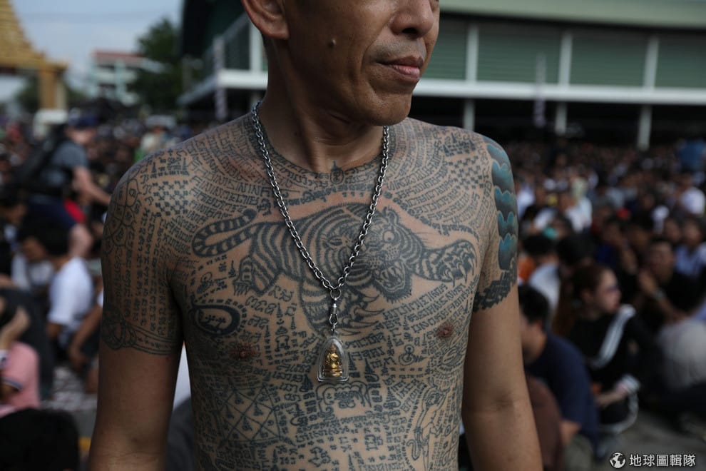 挽拍佛寺(Wat Bang Phra Monastery)正在舉行一年一度的刺青節,只見信徒紛紛在身上刺了各式各樣的刺青,他們相信這些刺青有消災解厄的作用。