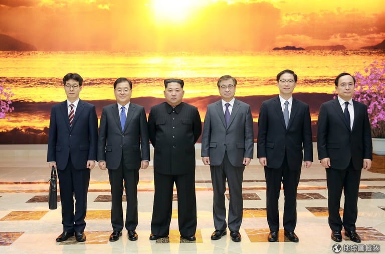 周一(5)晚間,北韓領導人金正恩在朝鮮勞動黨總部接見了南韓特使團一行十個人,雙方除了開會,還一起共進晚餐,這也是北韓領導人金正恩首次和南韓高層會面。外界認為在平昌冬奧結束後,兩韓想趁勢讓去年因為核武和飛彈引起的緊張情勢降溫。
