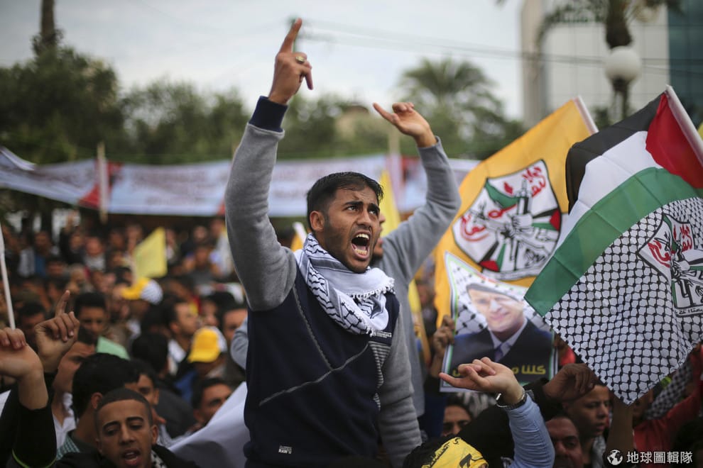 巴勒斯坦人和以色列國防軍(IDF)在加薩走廊一直以來衝突不斷。圖為2014年12月,前法塔赫(Fatah)領導人達哈蘭的支持者在反巴勒斯坦總統阿巴斯(Mahmoud Abbas)的活動上大喊。