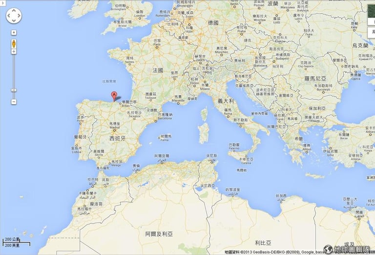 照片中紅色標籤的位置就是西班牙桑坦德市的所在地點。