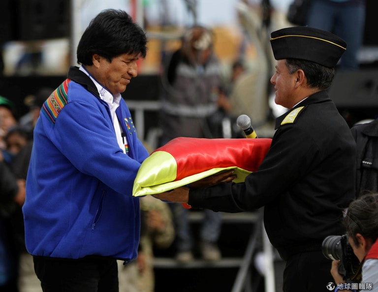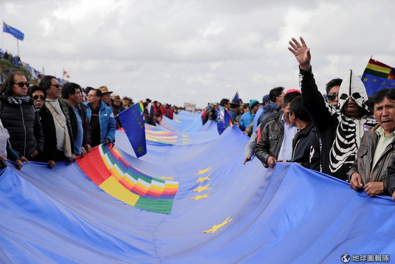 上周六(10),在玻利維亞的一場遊行中,展開了一條長近 200公里、寬 3公尺的藍色旗幟,想要宣示玻利維亞雖然是一個內陸國家,但是應該也有權利靠近海洋。