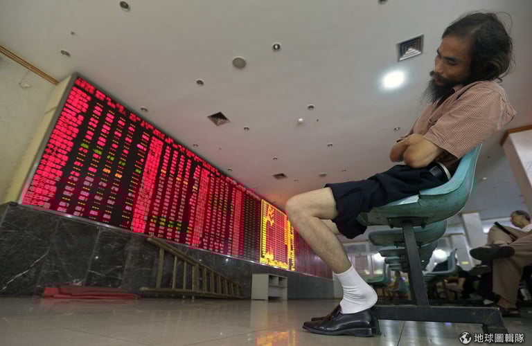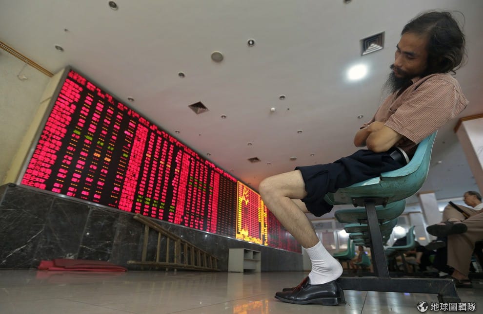 武漢市內的證券交易所內,投資人就在電子看板前睡到歪一邊。