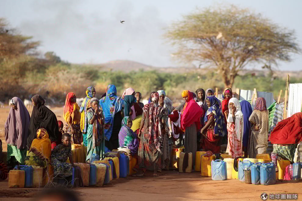 在索馬利亞北方的難民營,因為內戰而逃離家園的難民女子排隊等取水。