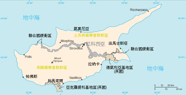 1983年,土耳其裔的賽普勒斯人宣布從賽普勒斯獨立,成立「北賽普勒斯土耳其共和國」(Turkish Republic of Northern Cyprus, TRNC),但北賽普勒斯土耳其共和國目前只有獲得土耳其承認,而聯合國安理會認為,北賽普勒斯土耳其共和國是土耳其佔領了賽普勒斯的一部分,而不是一個主權獨立的國家。