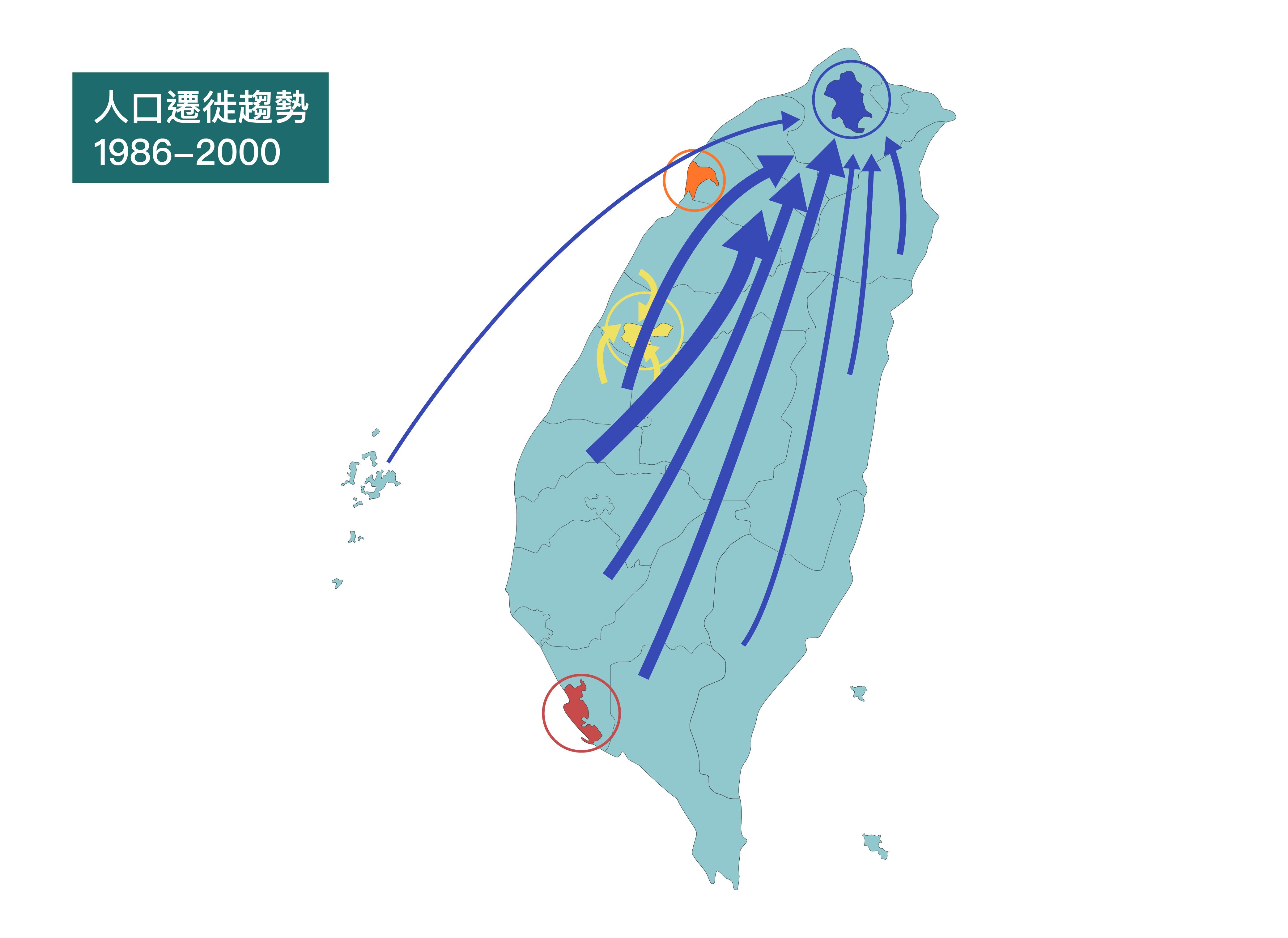 「人力運用擬-追蹤調查資料庫」分析結果顯示,1986-2000 年代,勞工們主要遷徙至臺北找工作,高雄自此勢微。
