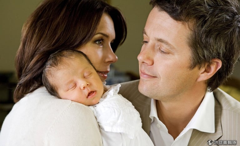 2007年,弗烈德瑞克王子(Prince Frederik)以及瑪莉公主(Crown Princess Mary)跟他們2周大的小公主合照。