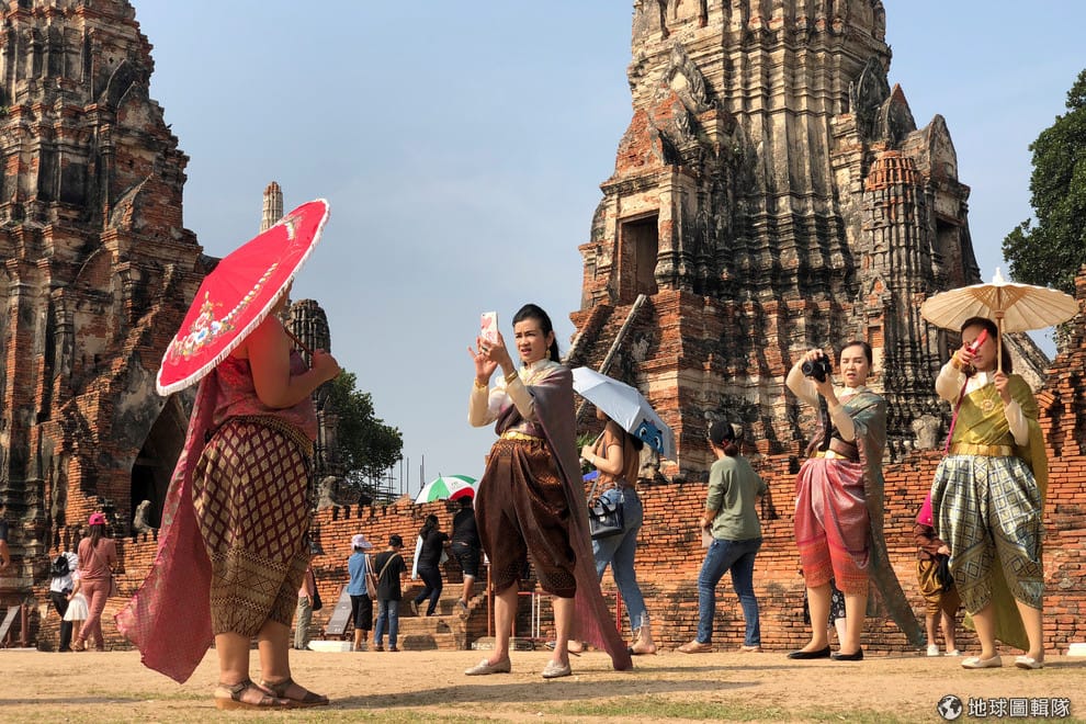 在阿瑜陀耶(Ayutthaya),人們紛紛傳起了傳統服飾拍照,最近泰國興起了一波歷史服飾風潮。