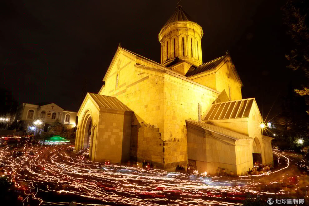 時逢復活節的午夜,提比里斯(Tbilisi)的居民手持蠟燭繞行於提比里斯錫安主教座堂(Sioni Cathedral),一切也在慢快門的拍攝下行成一幅獨特的景緻。