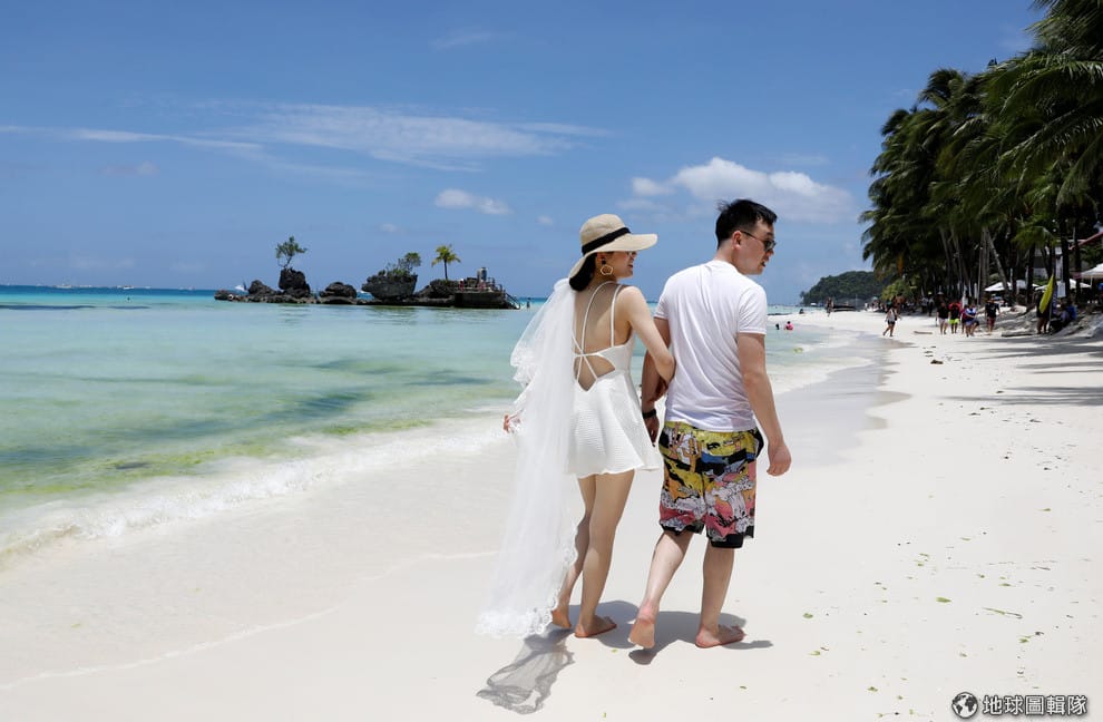 本月 8號,一對中國籍的新人漫步在長灘島的沙灘上。長灘島以觀光聞名,有不少新人想到海外舉辦婚禮時,都會想到長灘島。