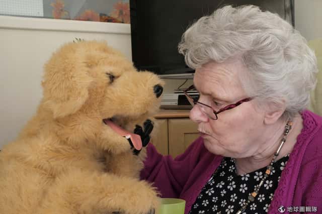 在安養院內,今年 73歲的布魯克(Katrina Brooke)正在和機械狗「比思吉」互動。院方除了希望可以透過「比思吉」的存在,緩解住民的焦慮或壓力,也希望能刺激住民的記憶力與社交能力。