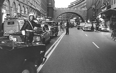 1967年9月3日,這天可說是瑞典交通史「風雲變色」的一天,因為瑞典這天正式將車輛從靠左行駛改成靠右行駛。當時政府會想要這麼做,是因為幾乎所有歐陸國家都是採靠右行駛,特別是當有人從丹麥、挪威、芬蘭前往瑞典時,總會因為搞不清楚駕駛方向而發生意外事故。