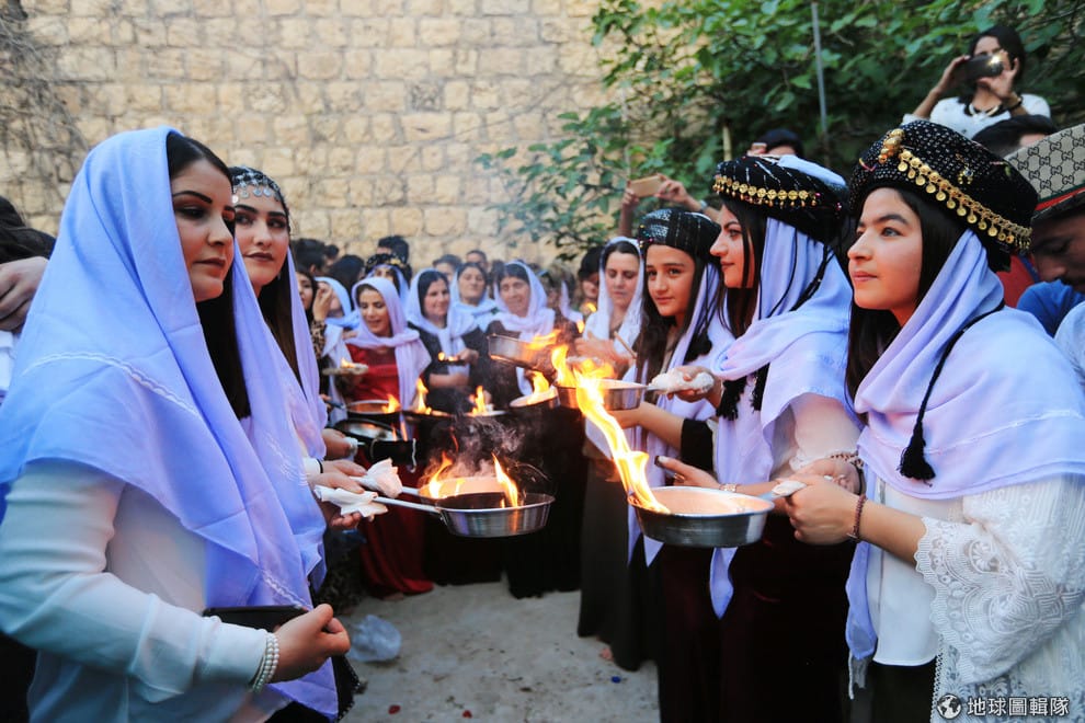 17號這天,亞茲迪人(Yazidis)齊聚一堂,拿著石蠟火炬在神廟前慶祝新年的到來。
