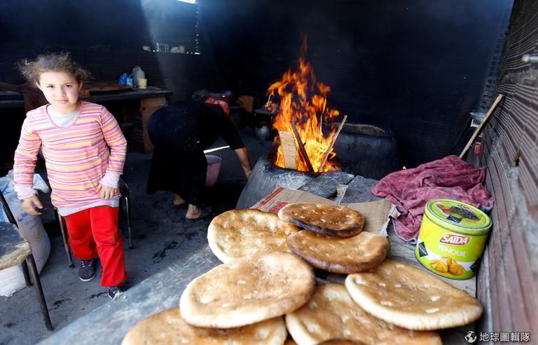 在突尼西亞北方的古蘭巴利耶市(Grombalia),一名女子正在廚房內用傳統泥爐烤麵包,這種麵包稱為「塔布納」(Tabouna),是家家戶戶用餐時不可缺少的主食。